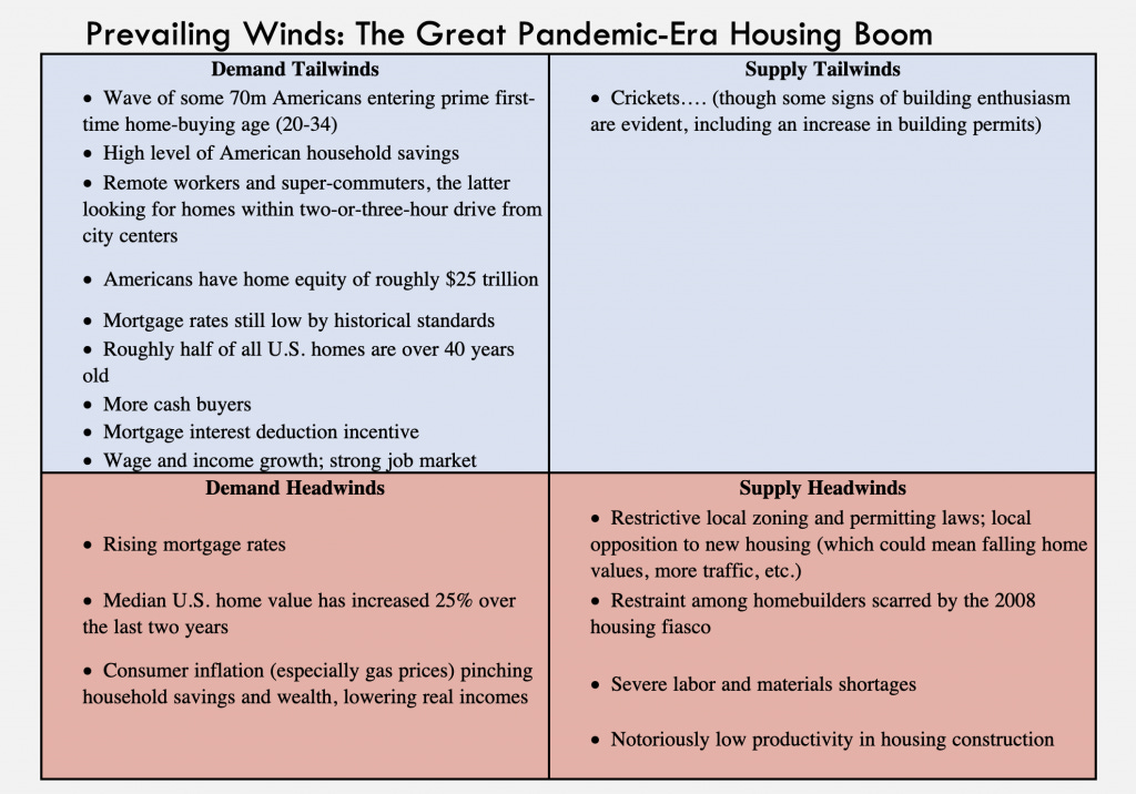 Housing: “Are we a society that actually wants home prices to go down?” Housingwire’s Logan Mohtashami asks this important question, which doesn’t have an easy answer. Homeowners love it when home prices rise, he said on the “New Bazaar” podcast. After all, roughly two-thirds of American families own their own home. The country’s 3m-plus real estate agents do well financially when home prices rise. So do many others in the vast housing sector ecosystem. Housing is a critical component of savings for retirement. In fact, whenever the economy starts to falter, the typical response is to lower interest rates to stimulate—most importantly—housing demand. People can also borrow against the rising value of their home, generating more spending power for the economy. You’ve surely heard the mantra: Buying a home is the best investment you’ll ever make.” Do we really want to cool down housing prices?